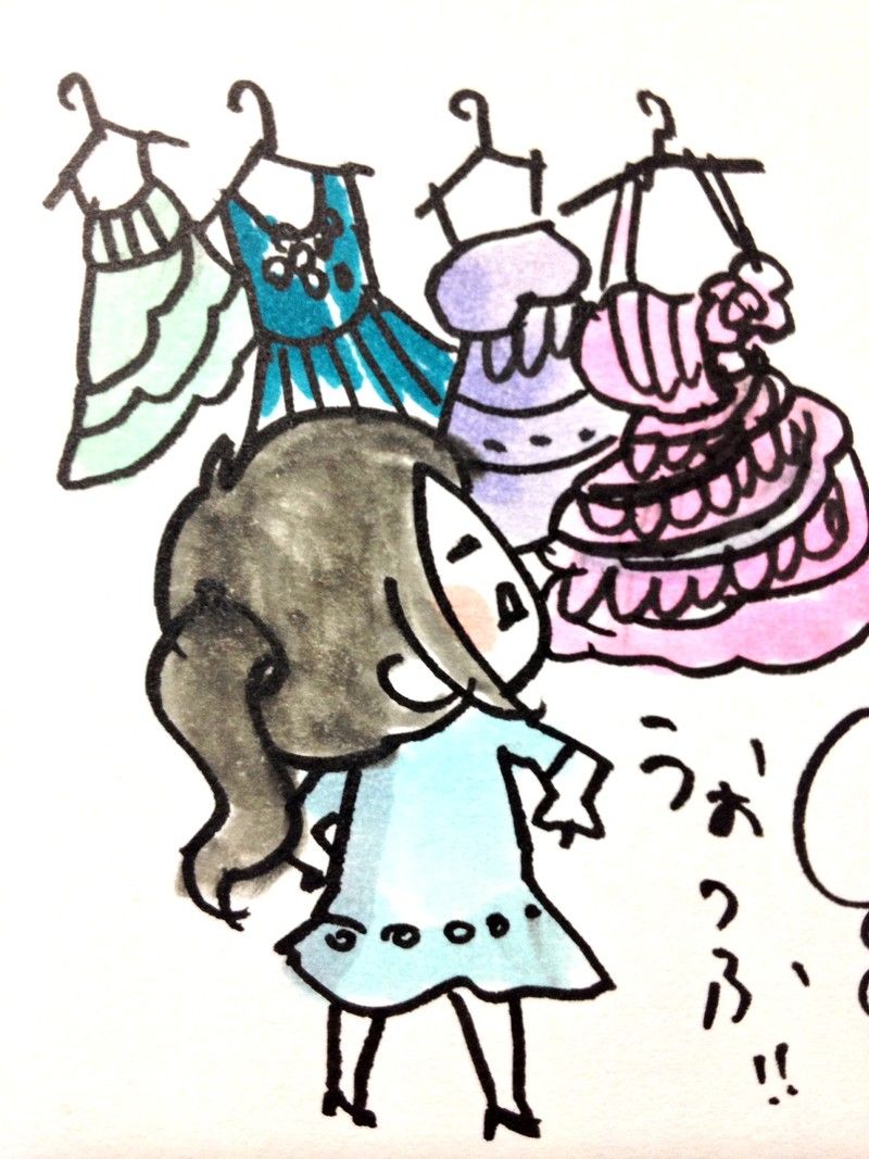 カラードレスを見についてった。