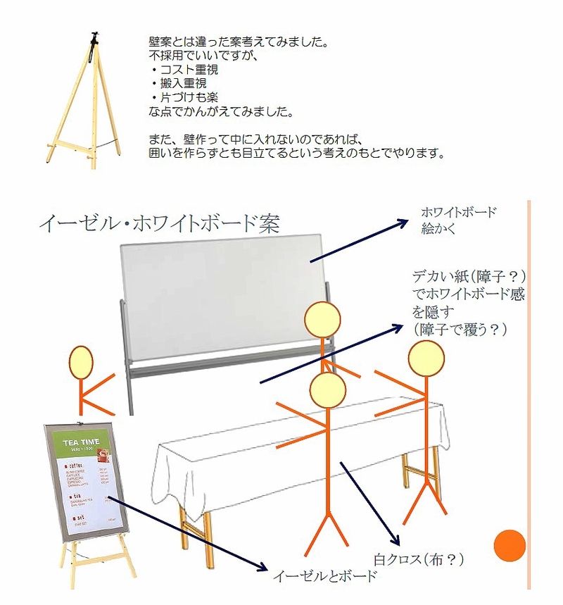 でも、見せ方や購入、保管、運搬、組立、撤収の手間暇を考えた結果、壁を借りることに。